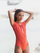 Maillot de bain une pièce Scuba avec fermeture éclair et manches courtes.
