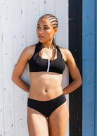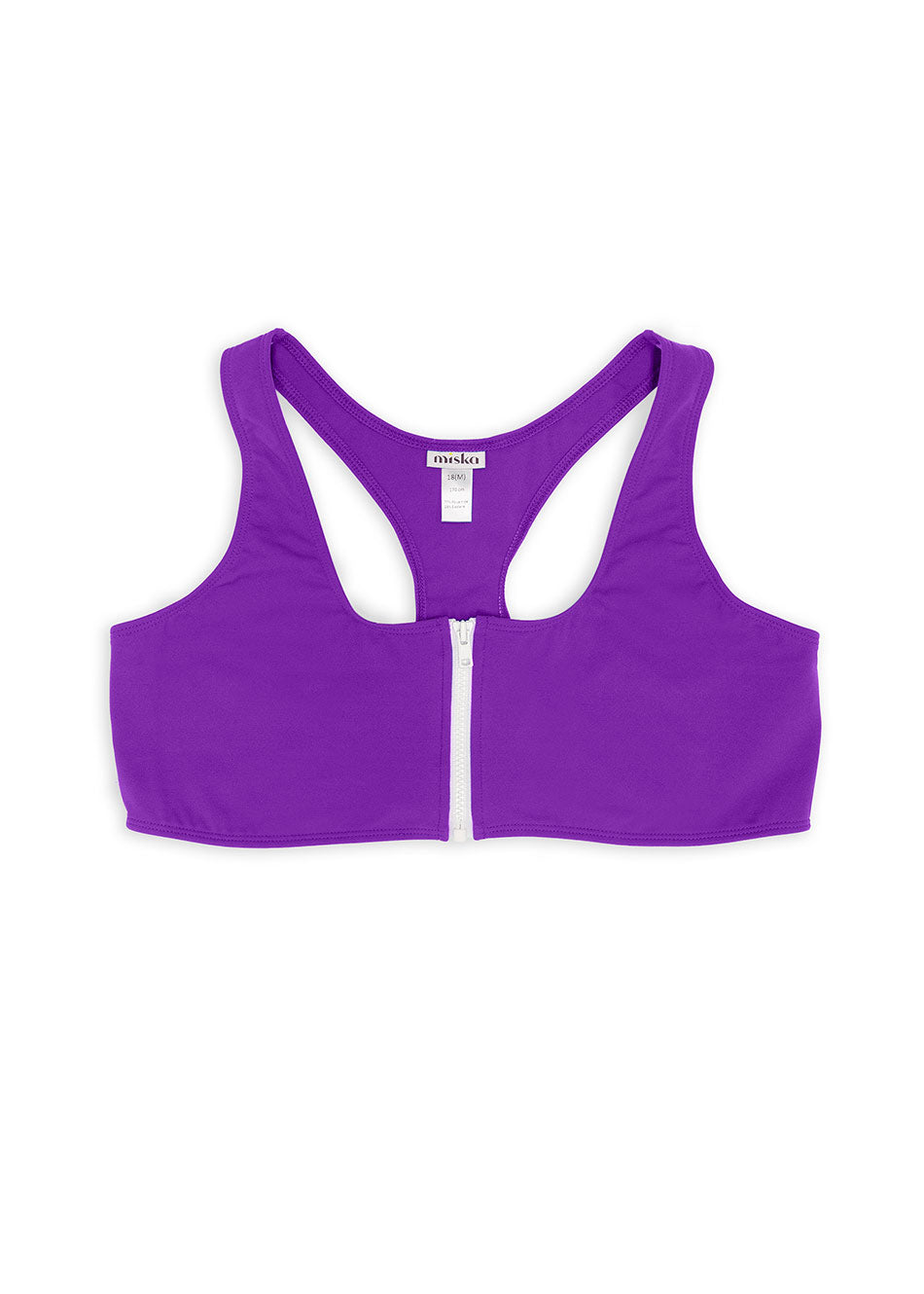 Haut de maillot de bain brassière racerback de nos anciennes collections avec zip sur le devant.