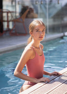 Our Basic model is a comfortable, eco-friendly option with UPF50 sun protection. Lined on the inside, it's opaque and dries quickly. Both sporty and feminine, it is available in several colours but also in a recycled pink material with fine stripes called Smoky Pink.